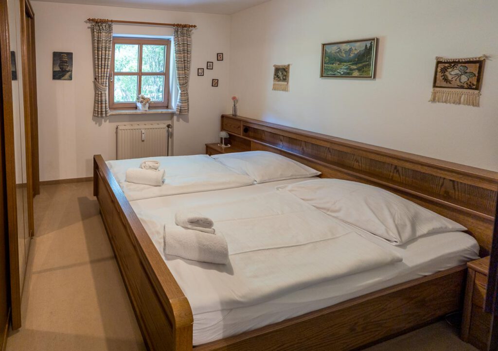 Im kompletten Schlafzimmer steht ein Doppelbett und eine ausziehbare Schlafcouch. Bettwäsche ist vorhanden.
